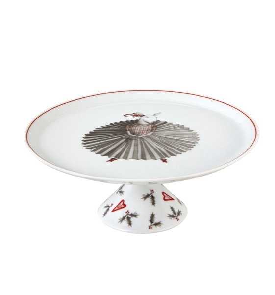 Agradável surpresa | Ideal para servir o bolo rei, esta peça parece extra simples quando chega à mesa e, depois do bolo comido, revela-se tão divertida quanto elegante. | Prato com pé Vista Alegre, 30€