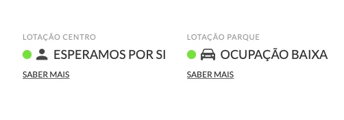 Na homepage do nosso site tem disponível um indicador visual que lhe mostra o estado da lotação do Centro e do parque de estacionamento. Consulte-o antes de sair de casa, já que, no caso de o espaço estar com a lotação máxima, poderá ter de aguardar até poder entrar.